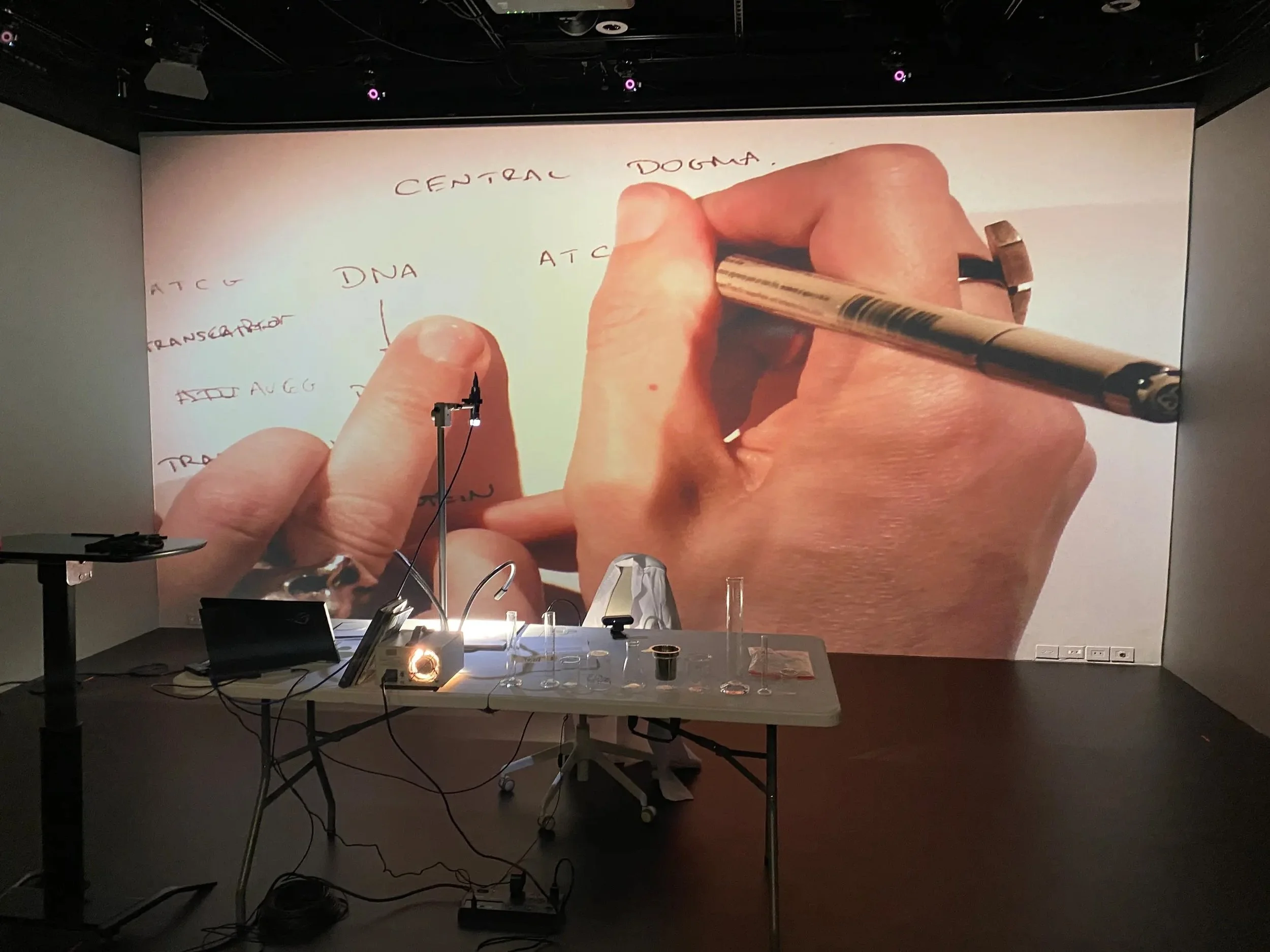Performance artist and filmmaker (and occasional amateur microbiologist) Sister Sylvester works with new technologies to make cross-species collaborations, essay films, and lecture performances. In Drinking Brecht, she brings her large-scale bio-art performance to Krannert Center audiences. Based on DNA extracted from a hat that was formerly in the costume collection of Bertolt Brecht’s Berliner Ensemble theatre company, Drinking Brecht is an interactive evening involving DNA extraction, science lectures, and genetically infused cocktails.